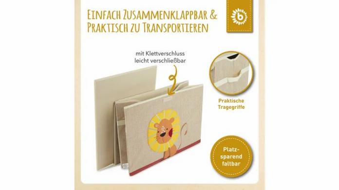 Diese schöne Spielzeugbox von Bieco bringt Ordnung ins Kinderzimmer. Die dekorative Kiste hat einen Deckel zum Aufklappen, der sich mit einem Klettverschluss leicht verschließen lässt. Wird die Aufbewahrungsbox einmal nicht benötigt, kann sie einfach zusammengefaltet werden und verschwindet platzsparend im Schrank. Dank der Tragegriffe an der Seite der Box lässt sie sich spielend einfach transportieren. Mit einem Fassungsvermögen von etwa 65 Litern bietet die schöne Box viel Platz für Lieblingsspielzeug, Kleidung und andere Dinge. Entdecke auch unsere weiteren Aufbewahrungsboxen in groß und klein für das Kinderzimmer mit weiteren niedlichen Motiven.